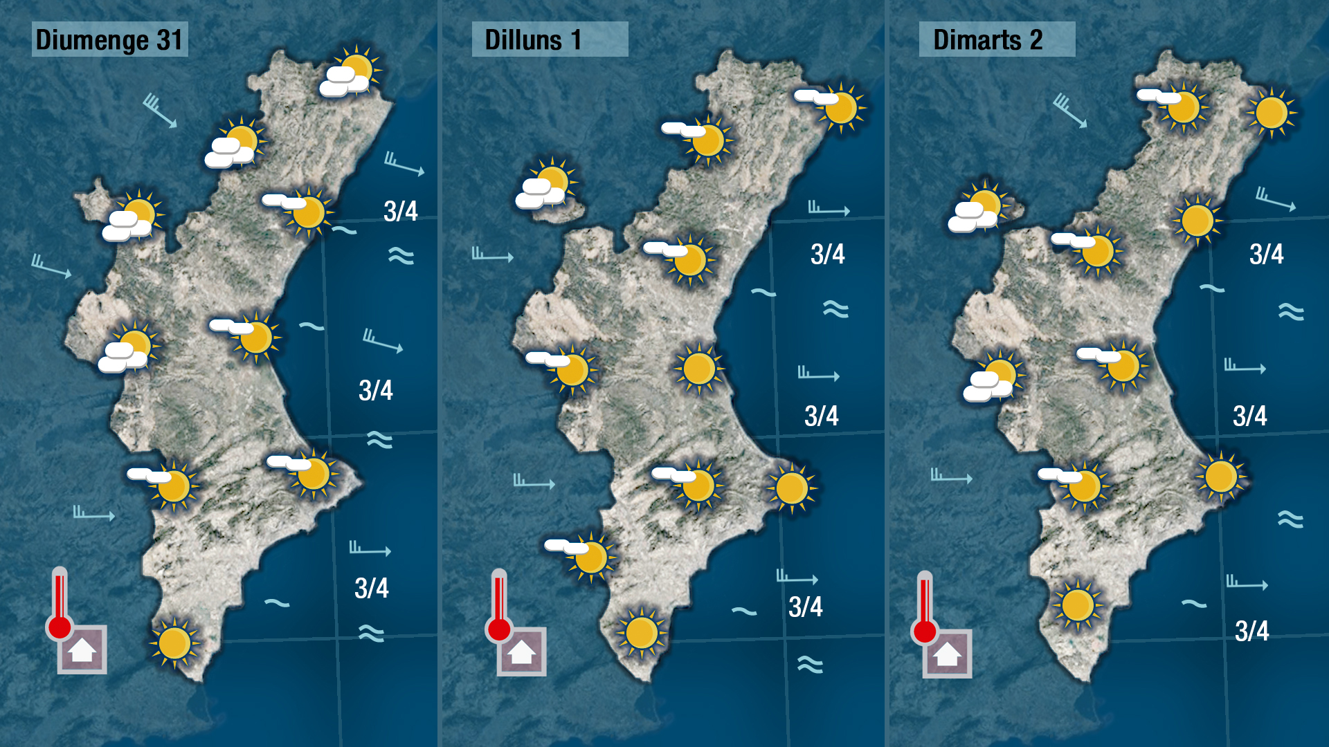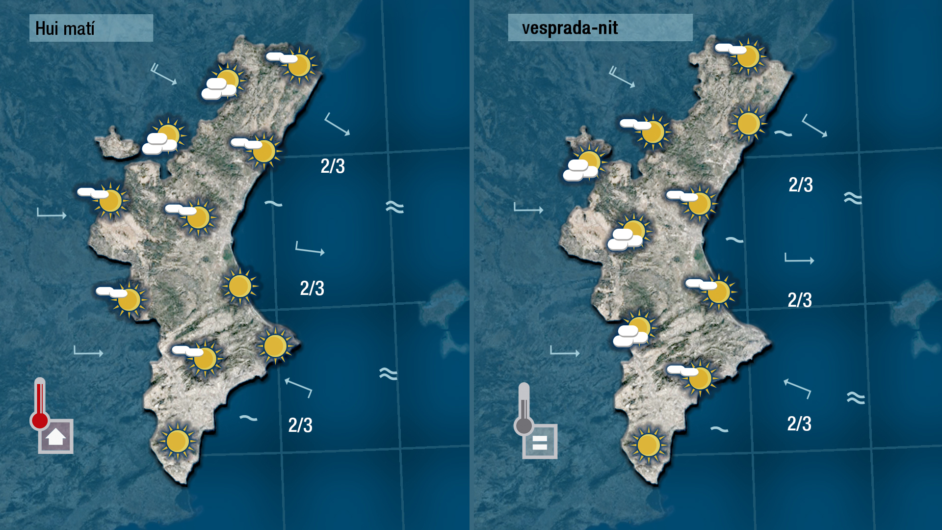 No serà fins demà quan comencen a baixar les temperatures. De fet, esta nit han pujat i les màximes podrien baixar un poc al nord i per l’interior, però grau amunt o grau avall quedaran per un estil a les d’ahir.