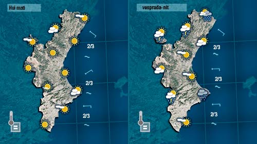 El matí serà assolellat, a migdia farà calor i de vesprada no podrem perdre de vista els nuclis de tempesta que puguen formar-se. Sembla que no seran tan actius ni generals com els d’ahir però la seua presència la tenim garantida.