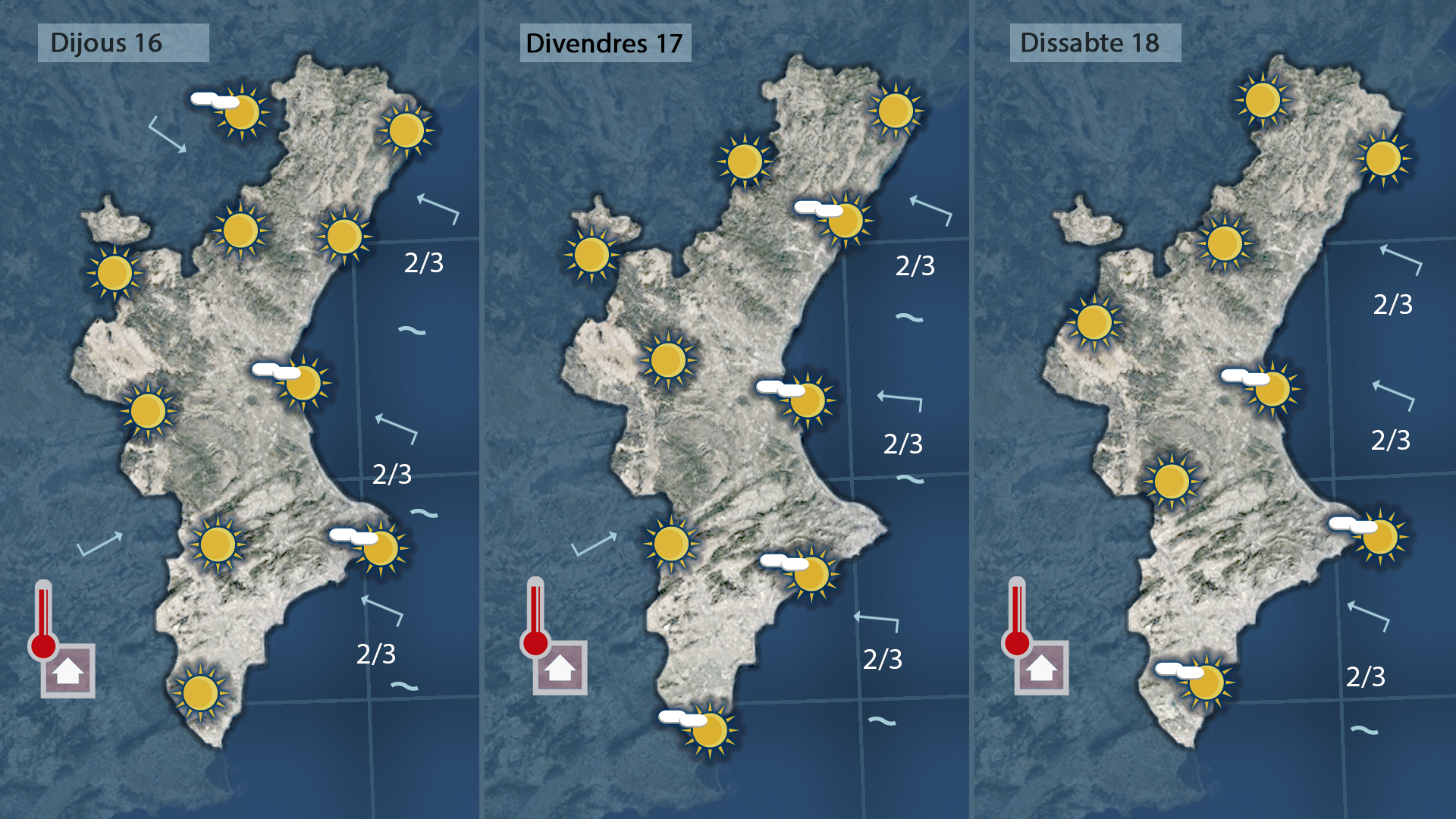 L’ascens tèrmic el notarem dia rere dia especialment elk les temperatures diürnes i ales comarques centrals, interiors i del sud on es deixarà sentir el vent de llebeig.