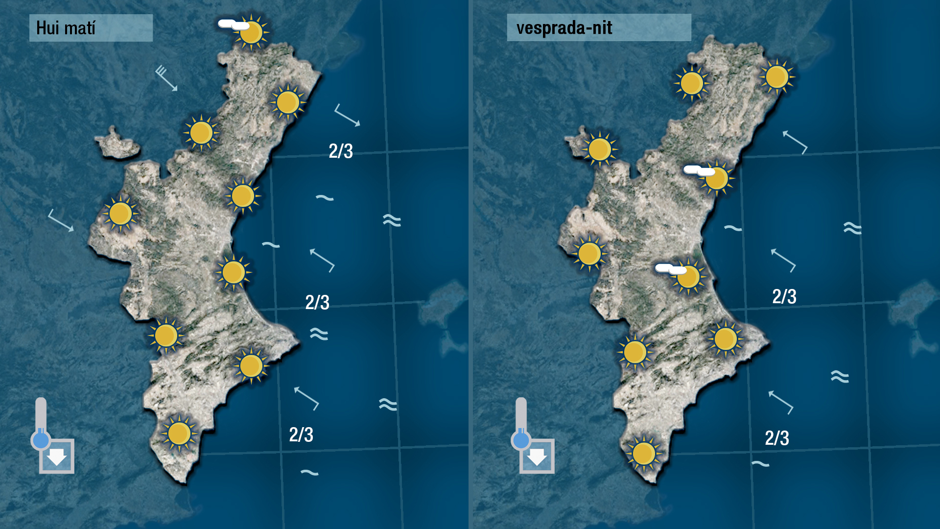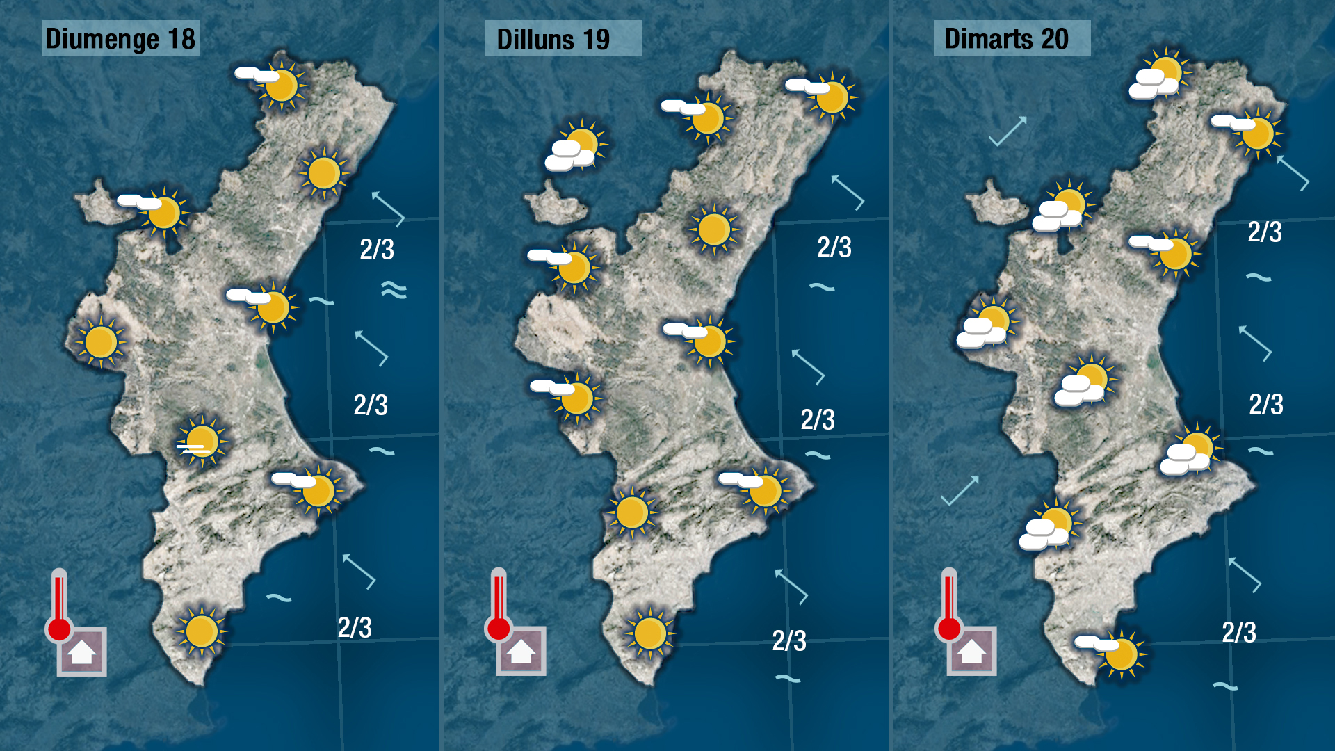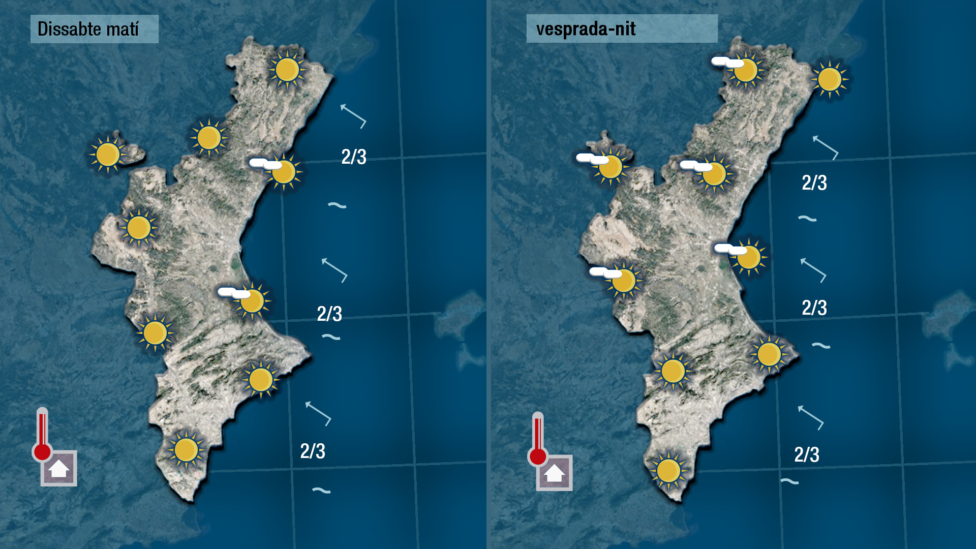Demà dissabte donarem la benvinguda al cap de setmana amb un lleuger ascens de les temperatures. Pujaran entre 1 i 3 graus tant les mínimes com les màximes. Al cel continuarà predominant el sol i a la mar el vent fluix de xaloc.
