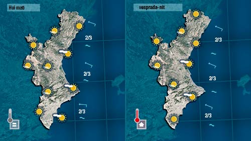 El dia començarà fresc però de seguida notarem com els termòmetres ‘volen’ pujar més que ahir. Al centre del dia hi haurà un bon grapat d’observatoris que arraparan o superaran els 20 graus.