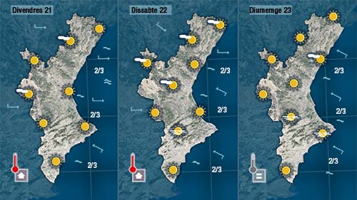 Divendres apurarem les últimes hores de la tardor amb sol i temperatures més altes. El ponent bufarà fluix i només en punts de la costa podria bufar el xaloc a partir de la vesprada.