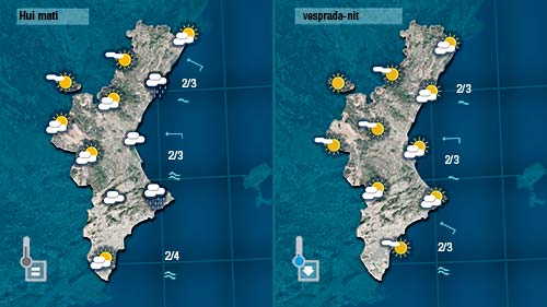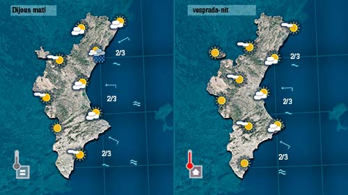 El núvols estan entrant des de bon de matí pel Comunitat Valenciana. Deixaran el cel cobert o parcialment cobert amb el pas de les hores i un abient molt bascós però apenes quatre gotes