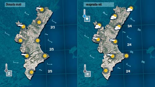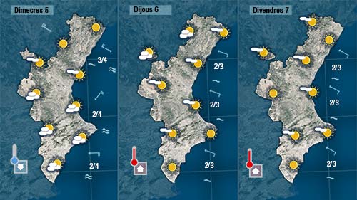 Dimecres el descens de les temperatures serà generals i notable per tot arreu. Pense que les màximes arribaran als valors que estos dies passats han marcat les mínimes.