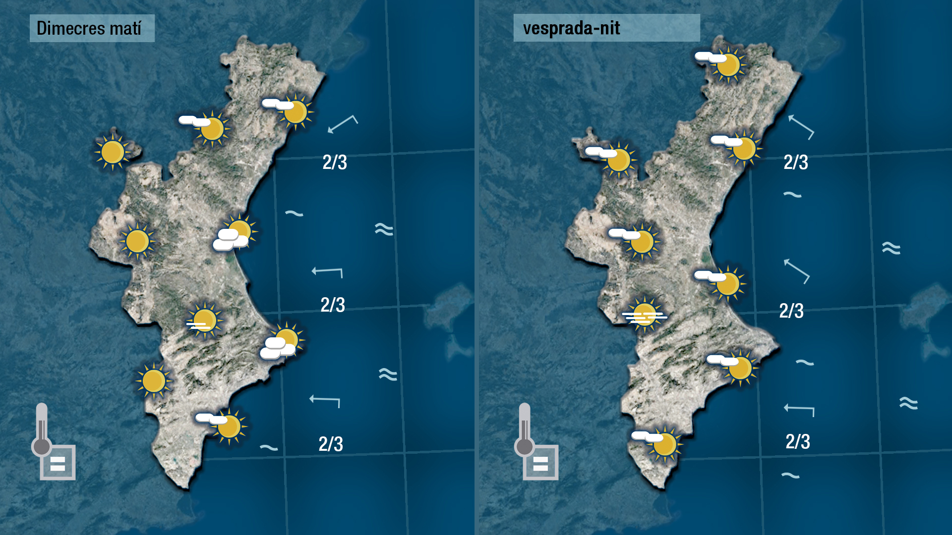Demà dimecres també hi haurà més núvols al nord que per l’interior. A la costa de la mitad sd també pot arribar a care alguna goteta i les temperatures es mnatindran fresques.
