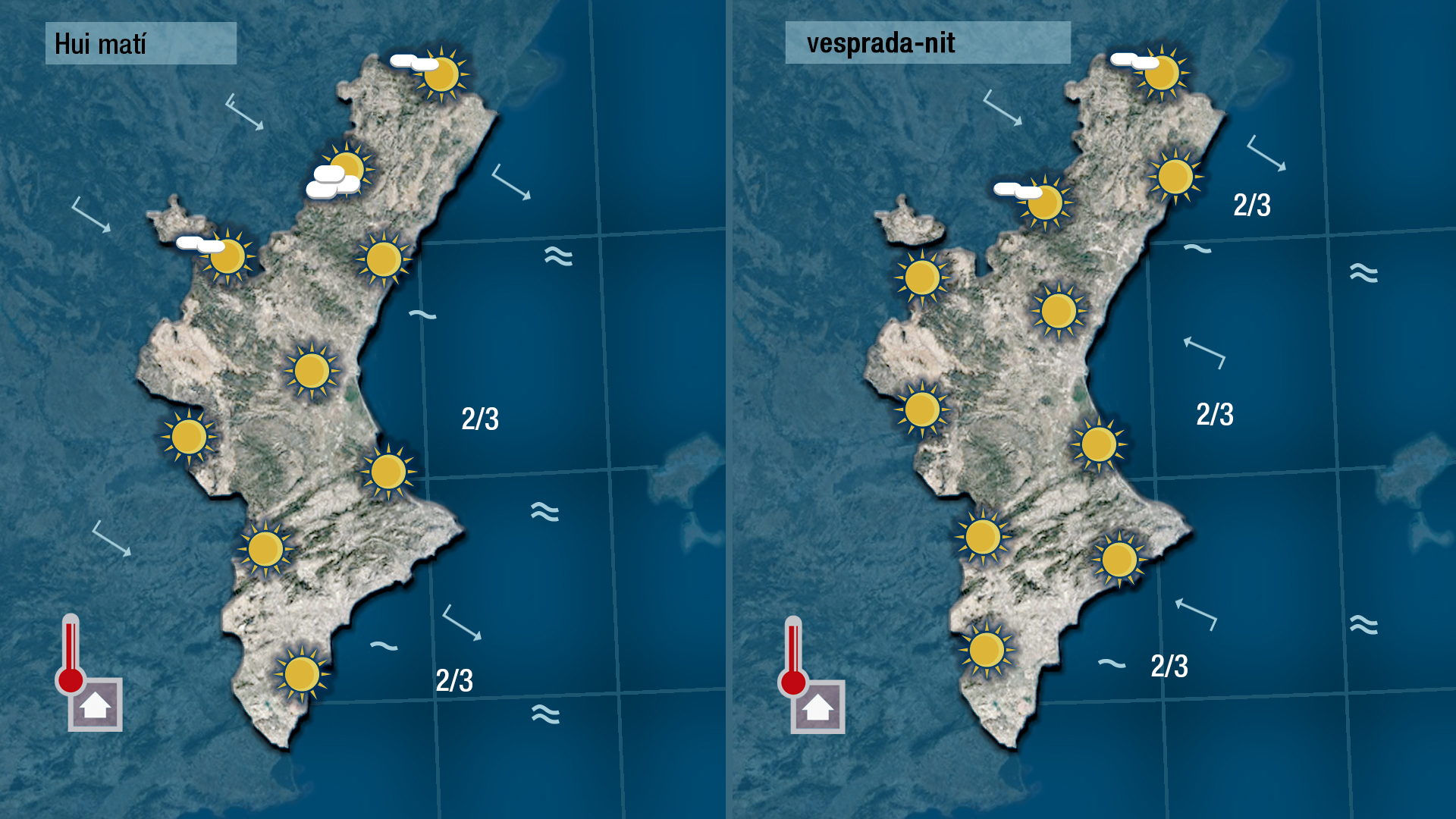 El vent es deixa sentir de mestral, amb ratxes moderades al nord, on incrementa la sensació de fred. Al centre i al sud encalmarà i fins i tot podrà deixar pas al xaloc.