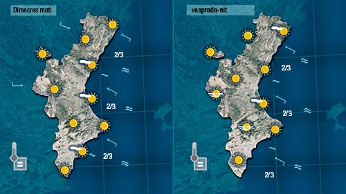 Demà dimecres, dia de Nadal, també cal esperar estabilitat per tot arreu i temperatures pot ser un poc més baixes, sobretot a la costa on el vent començarà a deixar-se sentir d’origen marítim.