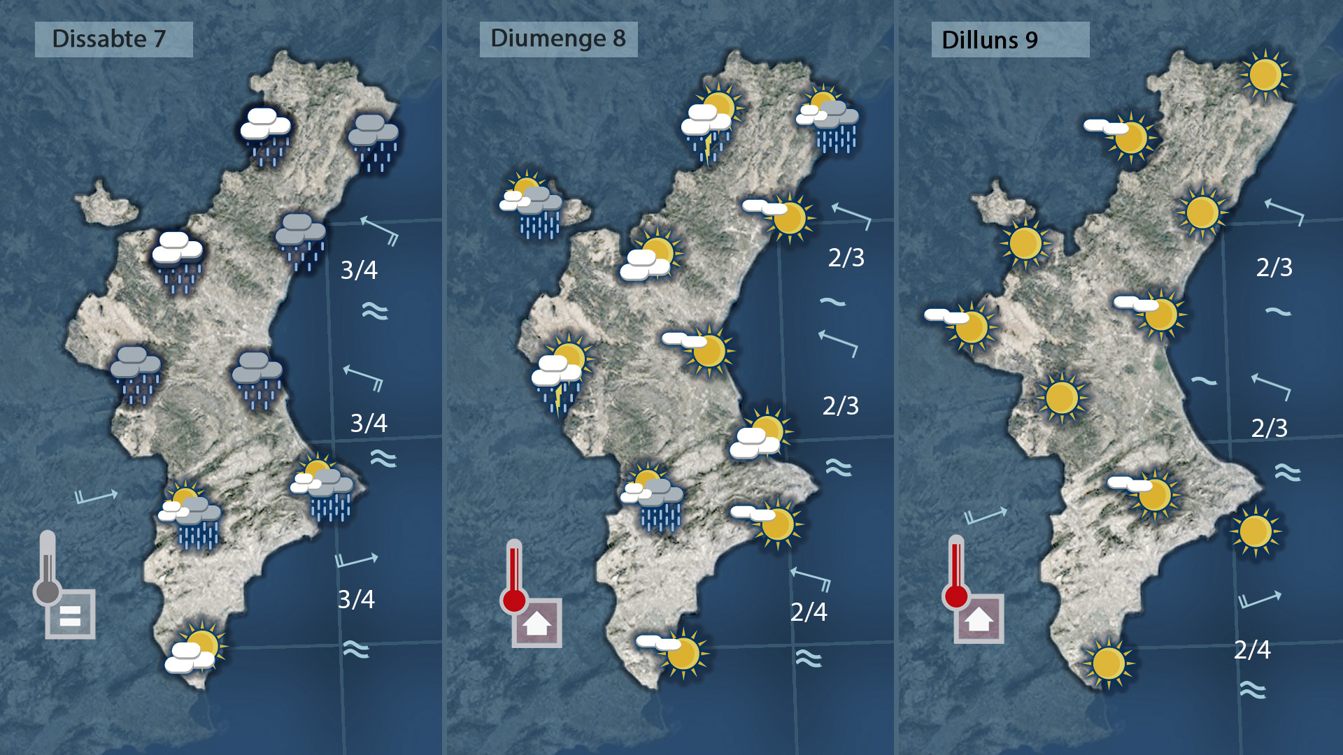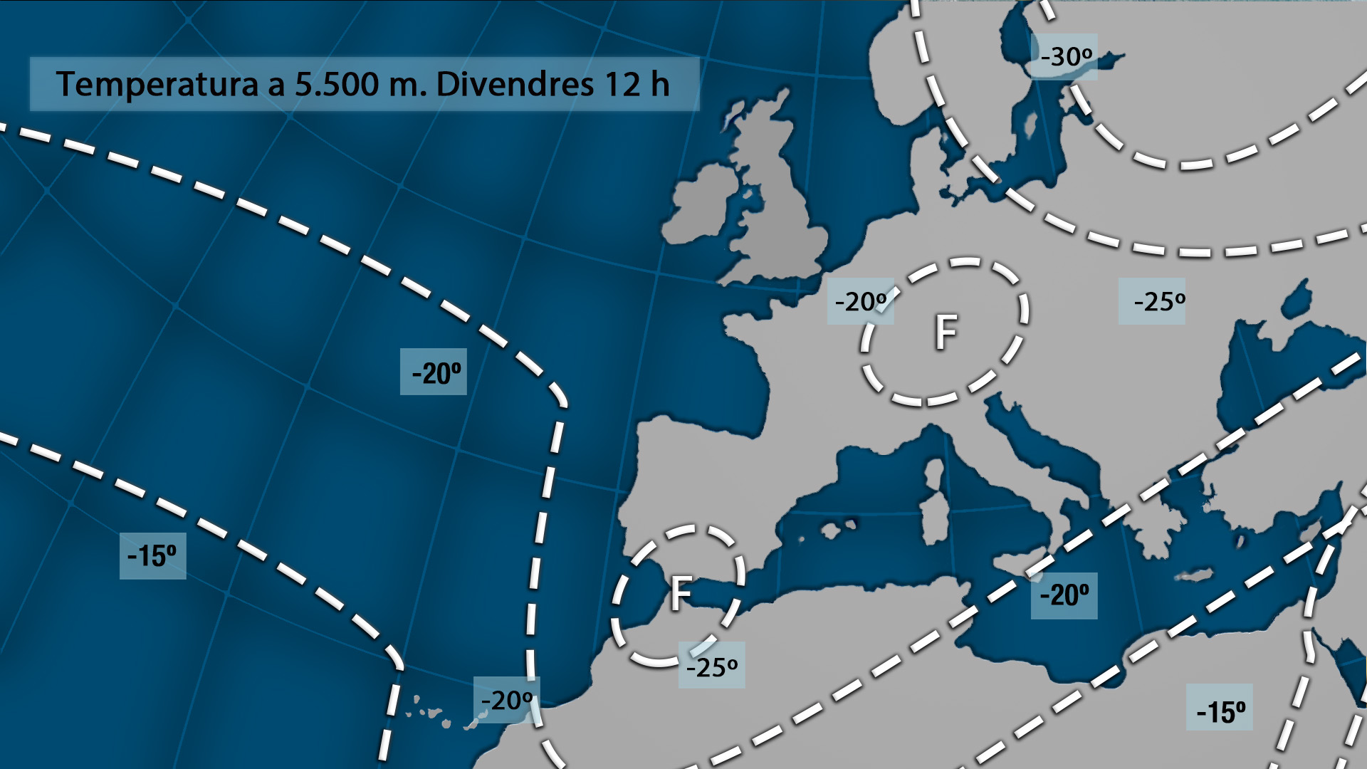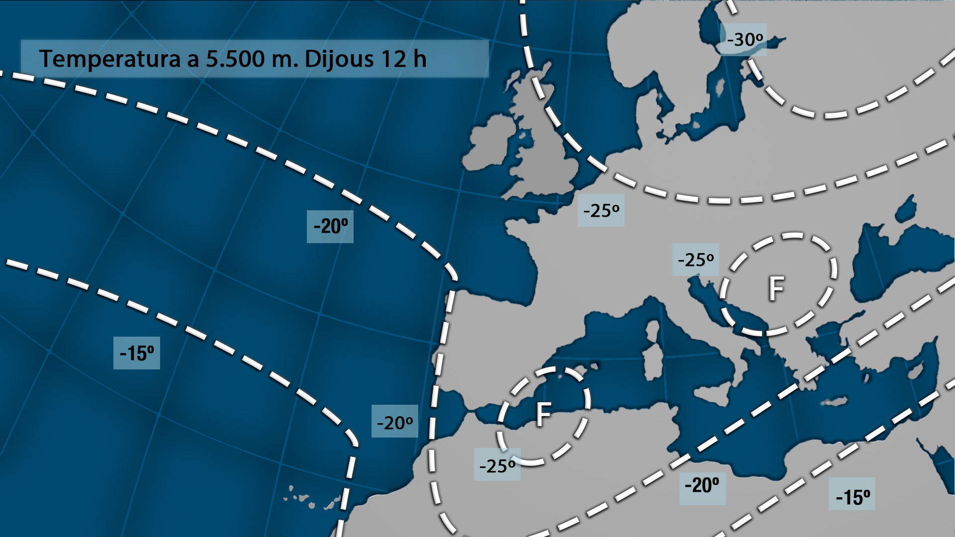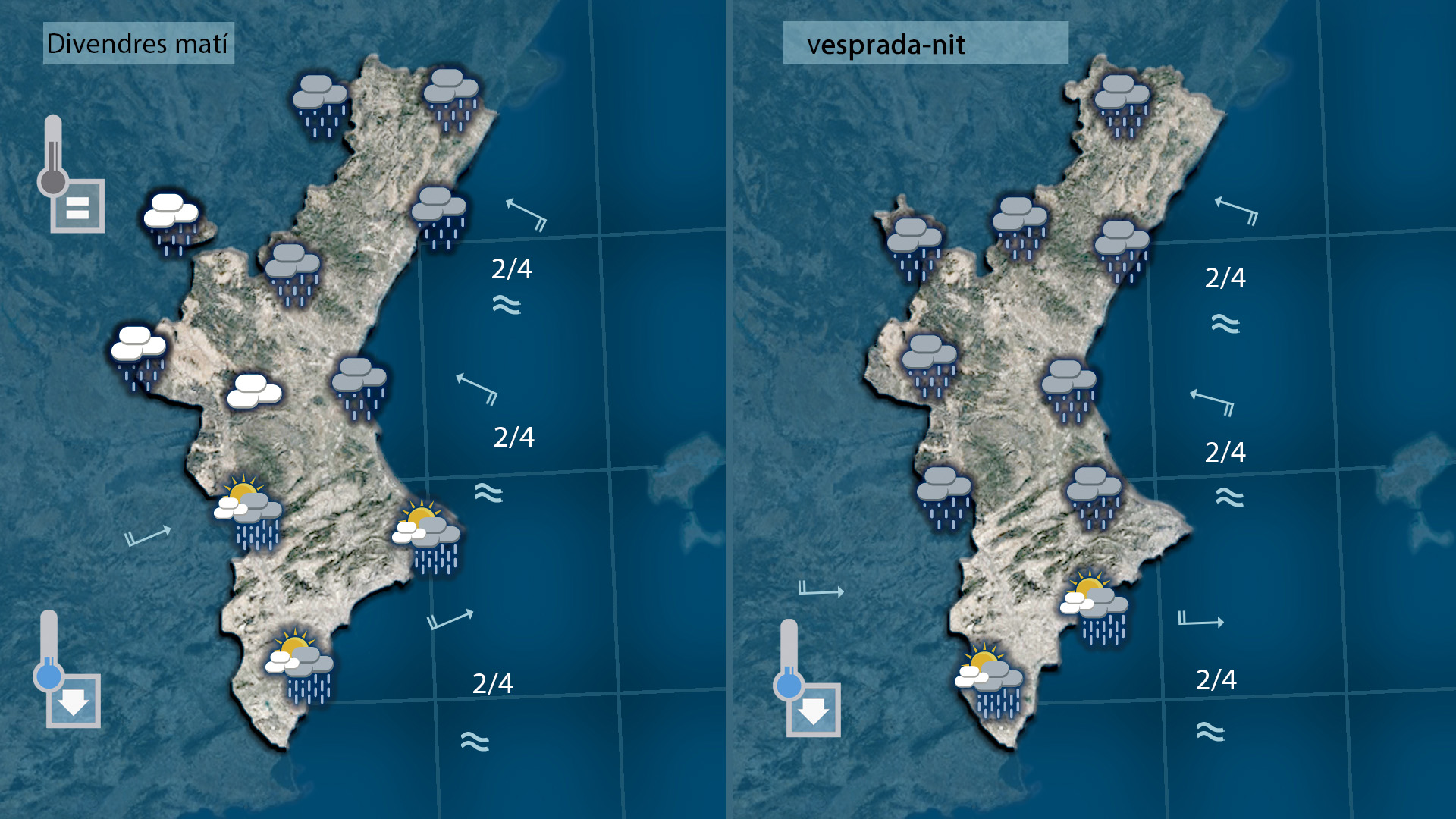 Demà divendres l’aire fred en altura es desplaçarà cap a la zona de l’Estret i la borrasca es situarà sobre la vertical de la Comunitat Valenciana aportant vents de llevant i xaloc al nord, on les pluges seran més intenses i generals i de ponent i llebeig al sud on les precipitacions seran més inconnexes i aïllades, però tot indica que la pluja també la tenim garantida i serà general amb temperatures que experimentaran pocs canvis