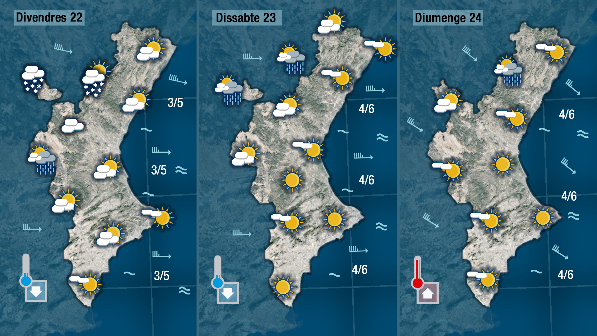 Divendres baixaran les temperatures. El ponent serà més fresc i acabarà girant a mestral al nord on al voltant dels 1.500 metres podria arribar acaure alguna volveta de neu.