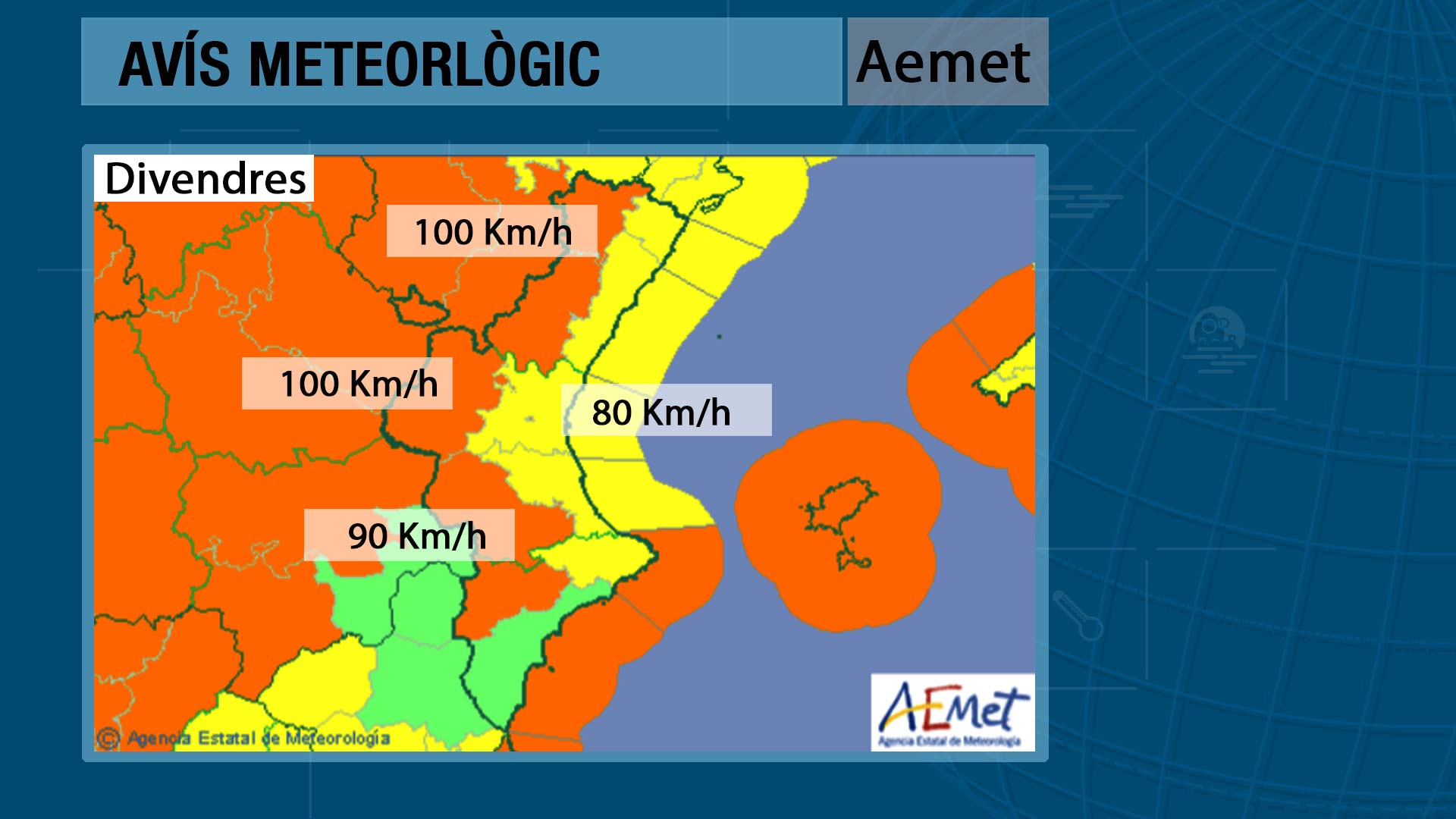 Aemet ha donat avís meteorlògic per fortes ràfegues de vet que poden superar els 100Km/h a l’interior i els 80 a la costa. Tot un contratemps a l’hora de conduir i fins i tot de passejar per places i carrers de les ciutats estos dies que estan plens de decoracións i llums de Nadal.