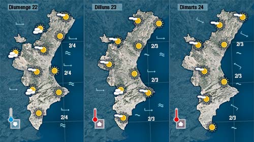 Esperem que comence a perdre força de vesprada. Durant el matí la nuvolositat encara serà abundant i no descartem ruixats dèbils al nord i per l’interior. Conforme vaja encalmant el vent escamparà la nuvolositat i notarem com refresca lleugerament l’ambient.