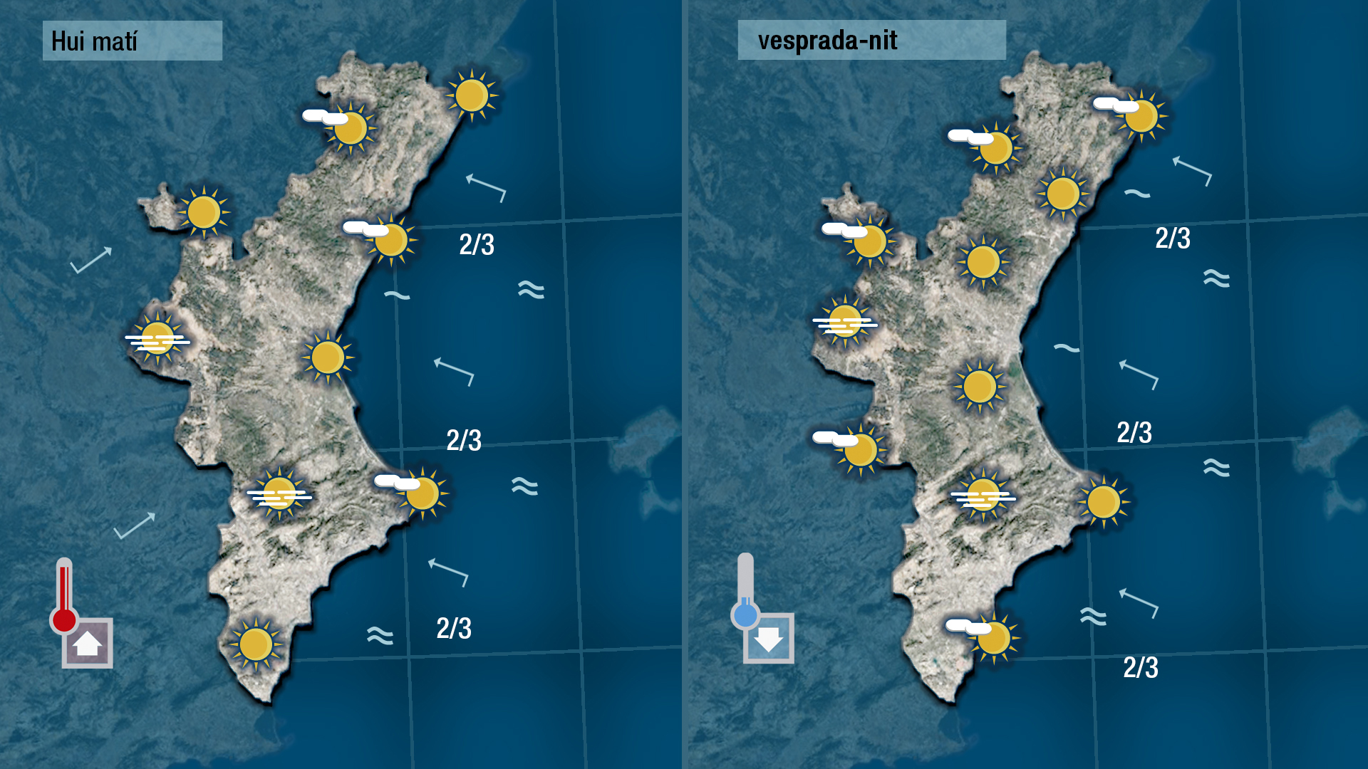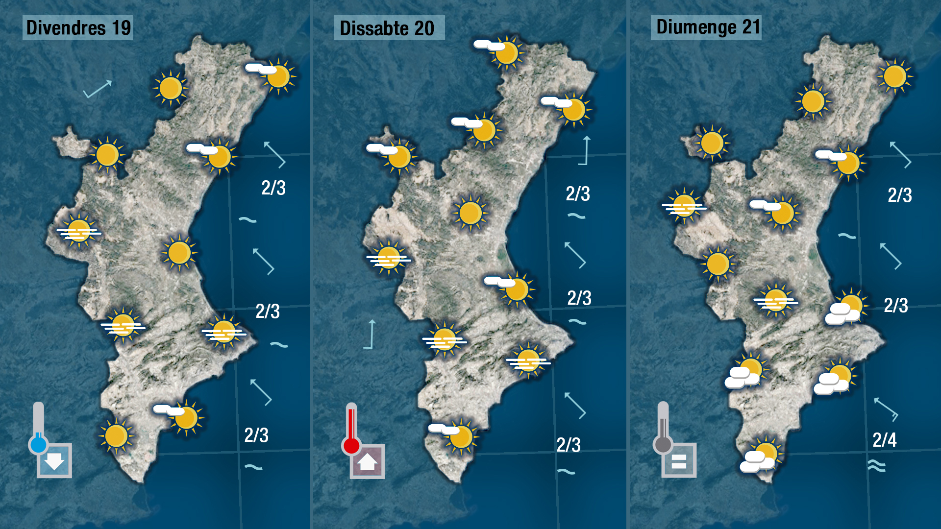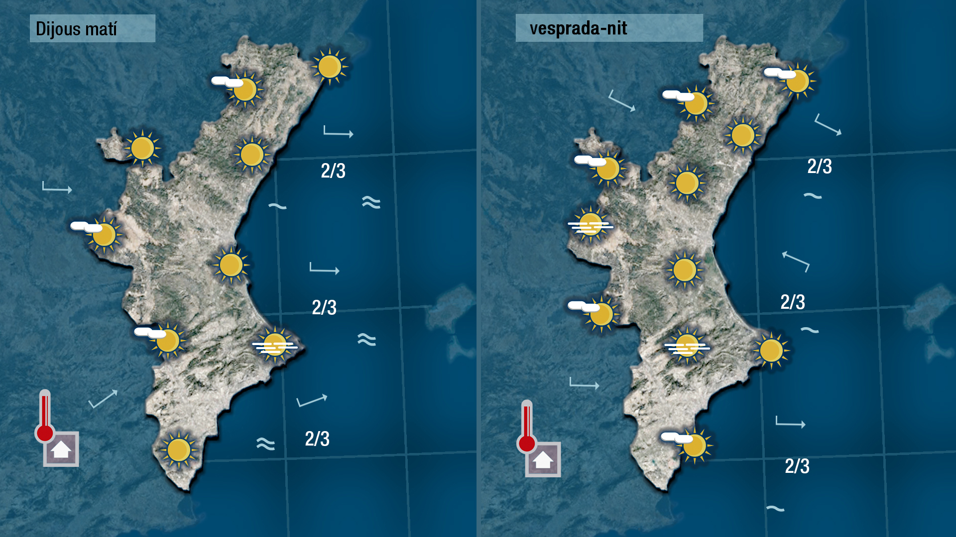 Demà dijous, en bufar un poc de ponent fins a mig matí, serà més difícil que es formen boires, però tampoc les descarte. Tornarà a ser un dia bàssica,ent dominat pel sol amb temperatures un poc més altes.