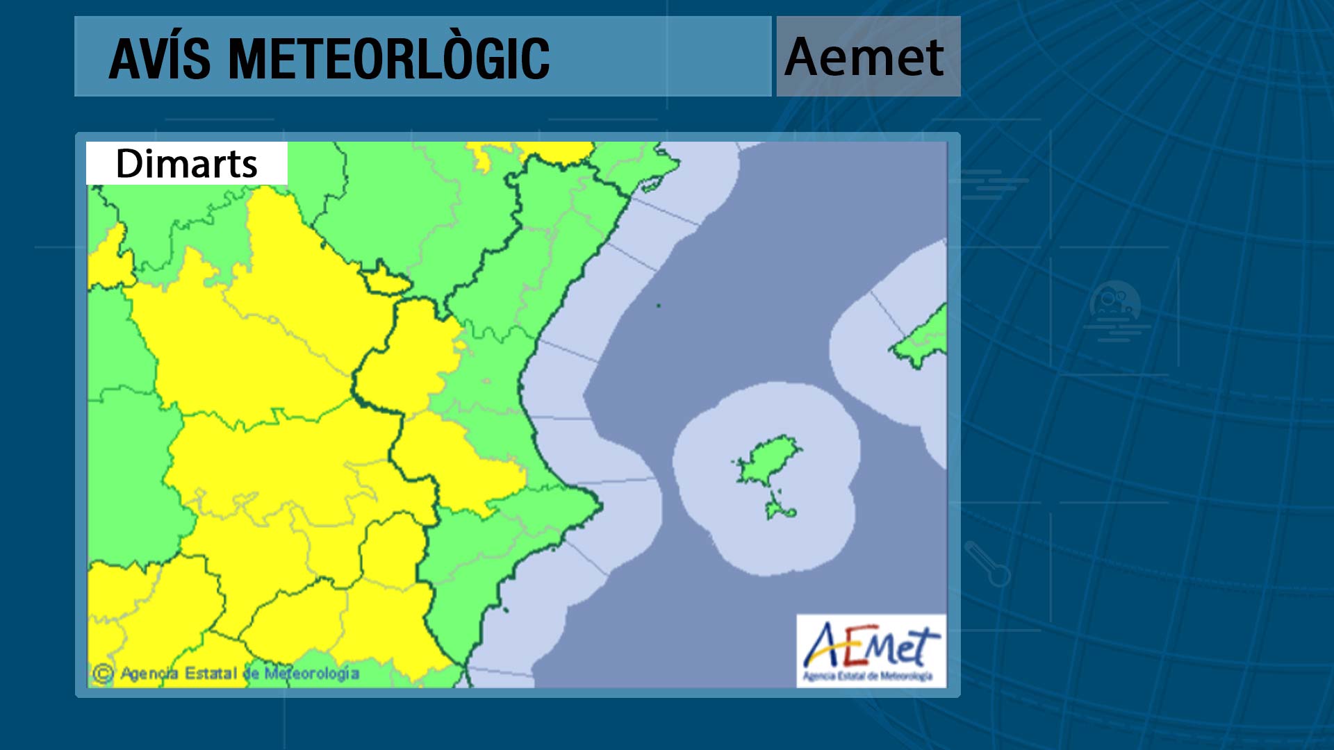 De fet, Aemet ha decratat per a hui i per a demà dimarts l’avís grog a les terres de l’interior on les temperatures s’enfilaran de nou per damunt del 35 graus i puntualment tocaran els 40.