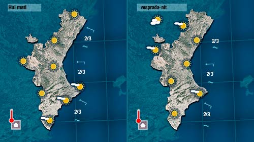 La nit ha tornat a ser dura de passar amb temperatures altes i humitats quasi al màxim, sobretot al litoral. La vesprada, tot i vore’s alguns núvols a les muntanyes del nord, serà assolellada i ben calorosa.