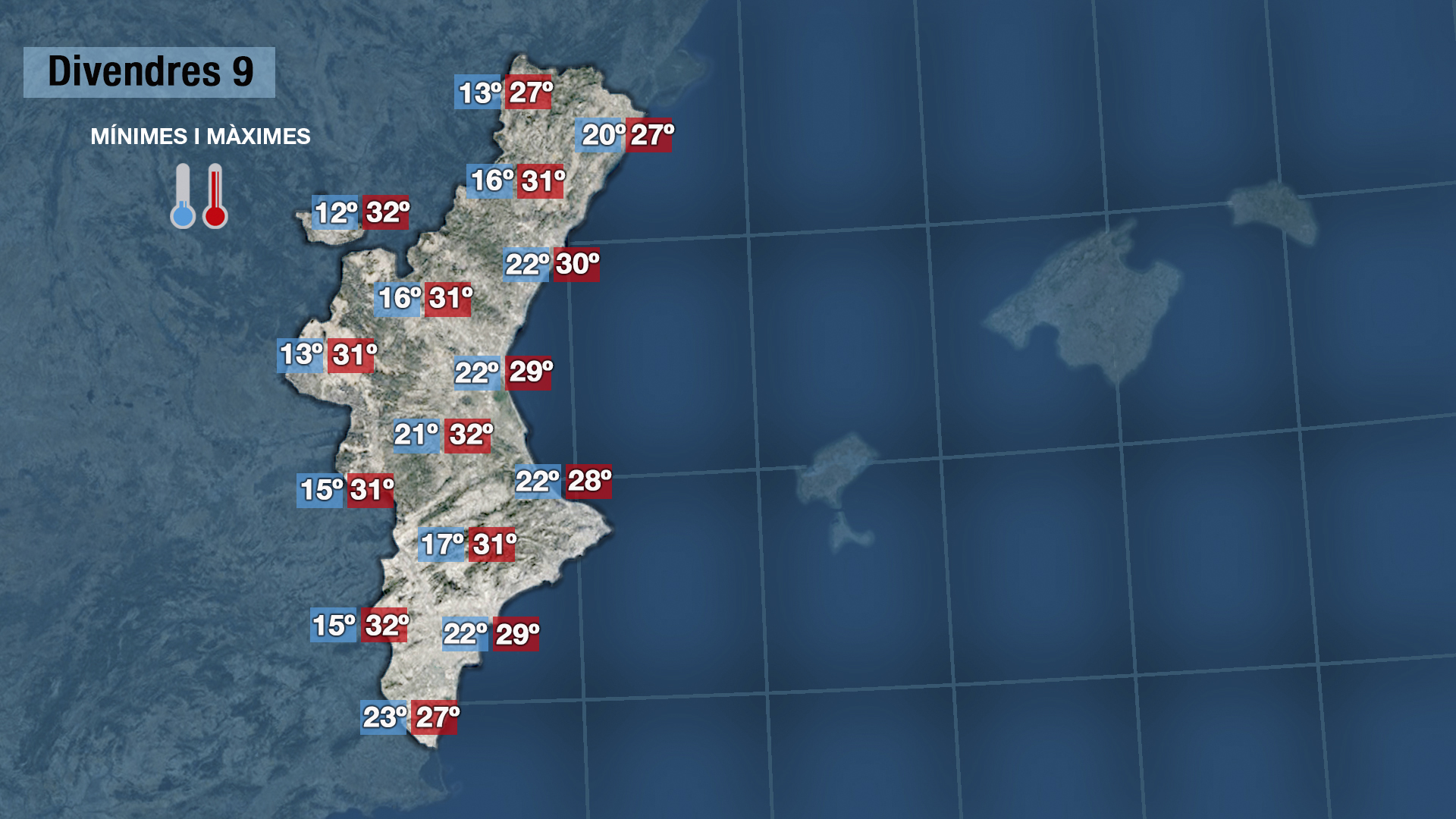 De l’oratge del cap de setmana només ens ha de proocupar la calor, la calor extrema que anem a patir a bona part de la Comunitat però sobretot les comarques ubicades al sud i a l’interior on es poden arribar a batre rècords de temperatures per a un mes de juliol.