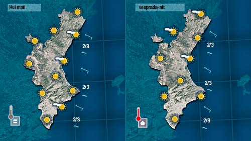 L’oratge de demà dijous tampoc aportarà grans novetats: domini del sol des de primera hora i temperatures un parell de graus més altes.
