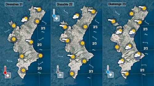 Dissabte encara patirem calor a la major part de la Comunitat. Només al nord on el vent bufarà de mestral i els núvols seran més abunants baixaran un poc les temperatures.