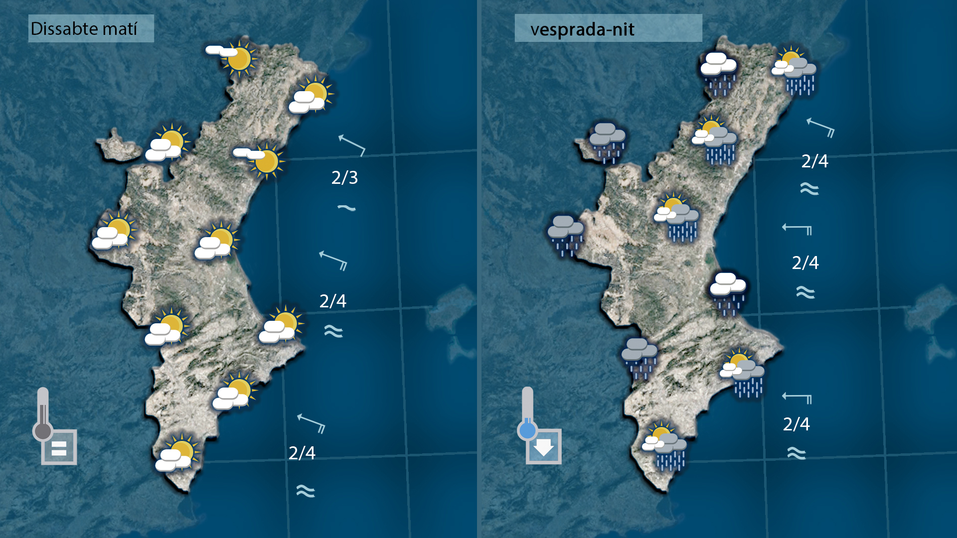Demà dissabte notarem com comencen a baixar le stemperatures i com augmenta la nuvolositat amb el pas de les hores. Mé sol d ematí que d evesprad ai més núvols i plugims de cara a la nit i matinada amb temperatures més baixes. en alguns observatris les temperatures quedaran fins a 10 graus més baixes.