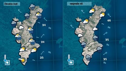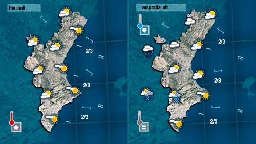 La inestabilitat començarà a manifestar-se hui al nord i a l’oes de la Península. A la Comunitat Valenciana tindrem més núvols però el dia encara estarà marcat per temperatures molt suaus. No descarte que puga ploure dèbilment la matinada de divendres a dissabte al nord i per l’interior però en qualsevil cas es tractaria de ruixats dèbils.