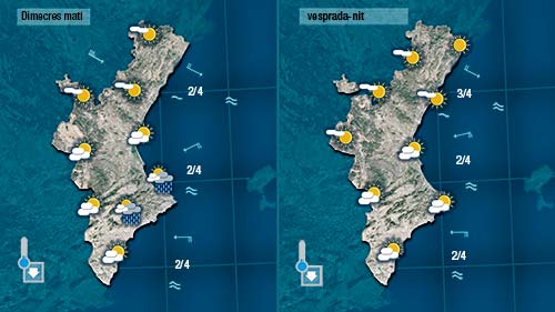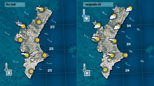 Demà dimecres les temperatures marcaran valors hivernals, de febrer. S’espera un descens de fins a 10 graus respecte els valors que teniem estos últims dies.