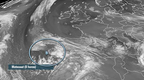 La borrasca ja està deixant puluges importants al sud-oest de la Península. A la Comunitat Valenciana els núvols davanters dels front associat a la pertorbació ja esta donant precipitacions que es faran generals amb el pas de les hores.