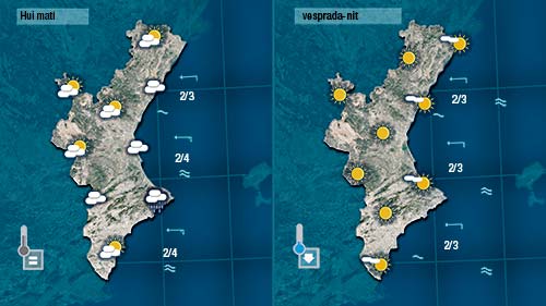 L’oratge de hui encara serà una continuïtat del des últims dies. El vent bufarà de llevant (amb ratxes moderades al sud on la mar quedarà més alterada) presència de boires i núvols a primera hora (no es descarta algun plugim dèbil) i temperatures no massa altes.