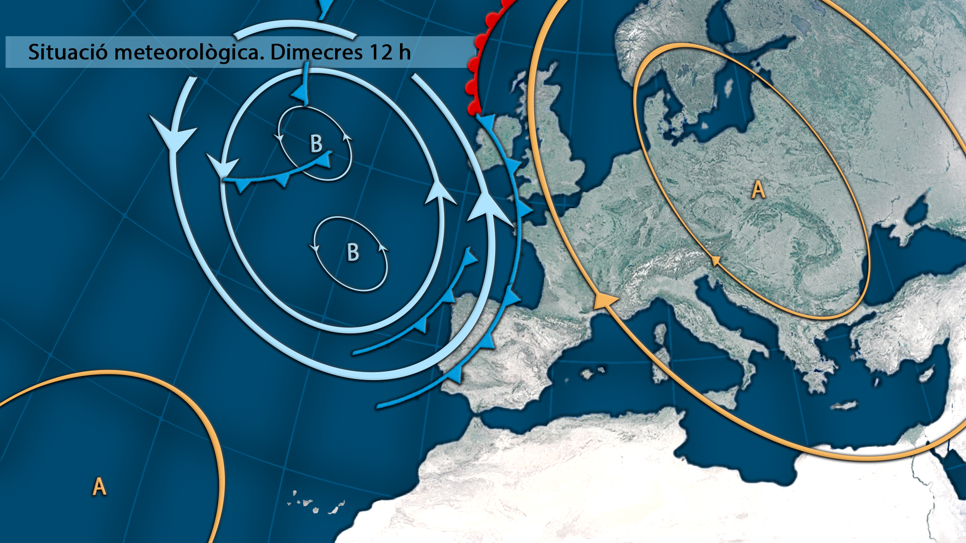 Tot i l’anticicló demà notarem l’aproximació d’una borrasca amb el seu front associat que impulsar vents del sud i del sud-oest que acabarà fent pujar les temperatures a la costa