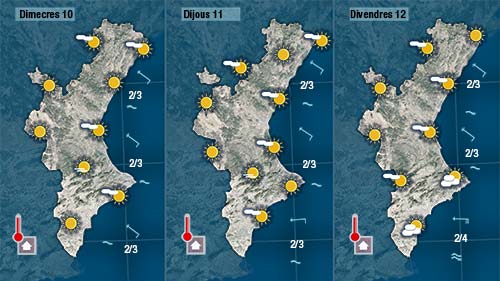 Durant la nit i matinada el mestral es deixarà sentir al nord de la Comunitat on l’ambient quedarà prou més fresc.