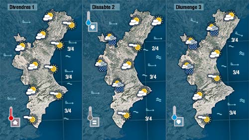 Dissabte els núvols podran descarregar alguna gota a les comarques de l’interior, on les temperatures iniciaran un descens que tindrà continuïtat a la resta de la Comunitat diumenge.