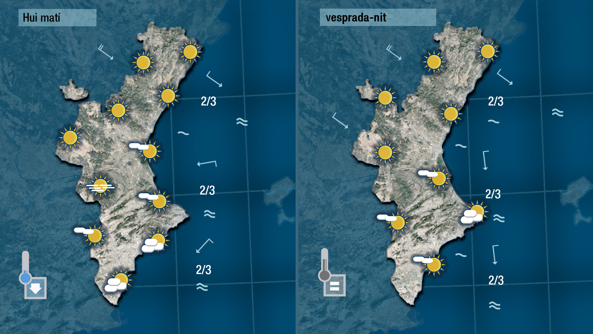 Hui encara serà un dia marcat pel sol i per temperatures suaus. La nit ha sigut tan fresca com la d’ahir, i al centre dle dia els termòmetres encara s’acostaran als 20 graus al centre i a la costa.