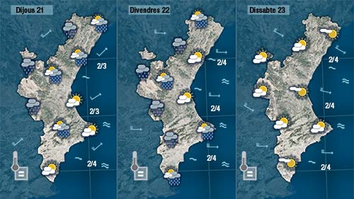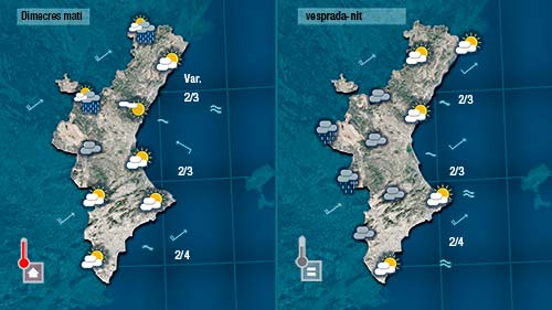 Demà dimecres tindrem el cel més cobert, però les precipitacions que puguen regitrar-se seran molt dèbils i segurament quedaran restringides a les comarques de l’interior.