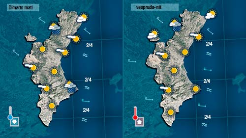 Dimarts serà una de les poques voltes que agrairem que bufe ponent i que a poc a poc retorne l’estabilitat. En fer més sol pujaran les temperatures màximes. De tota manera al nord encara podrà registra-se algun ruixat. Al sud tampoc descarte, alguna gota al matí.