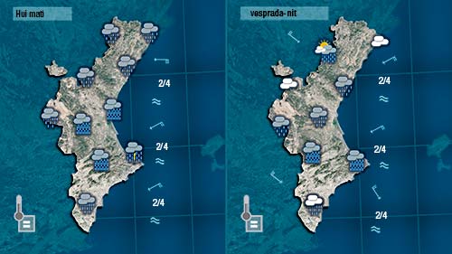 El de hui és un dia molt delicat, d’alta tensió, perquè estem davant d’unes d’eixes situacións que dona mola pluja a les zones litorals i prelitorals de València i del nord d’Alacant. Al nord no podem baixar la guardia però pel que veiem a les imatges del Meteosat la borrasca circula un poc més al sud del que estava previst i això ens fa pensar que les pluges més importants es registraran a la mitad sud de la Comunitat.