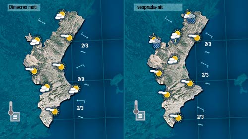 Demà dimecres vorem més el sol i pujaran les temperatures però de vesprada encara es formaran núvols d’evolució al nord on encara cal esperar ruixats i tronades que avançaran des de l’interior cap a la costa.