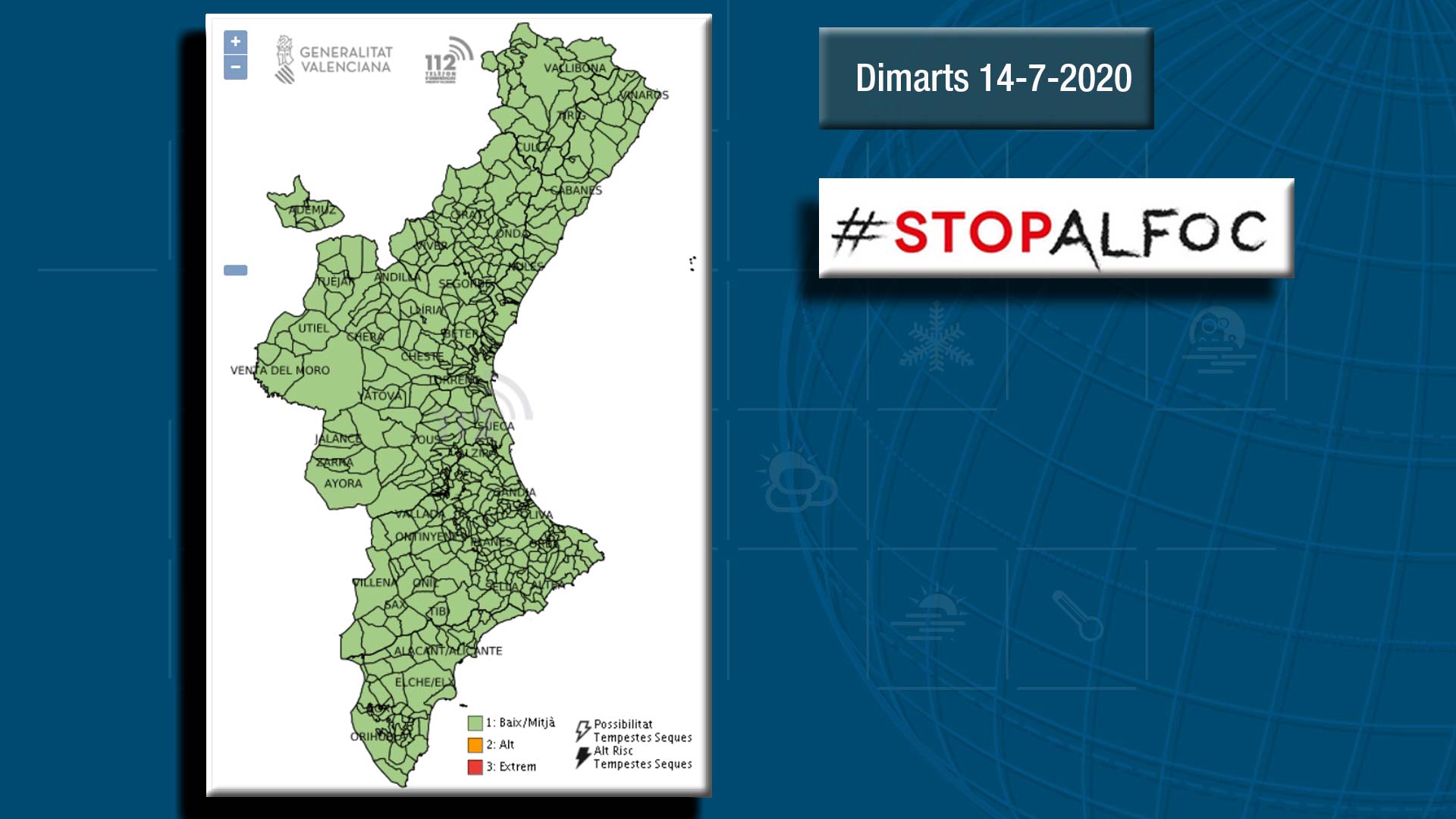 El risc d’incendis serà moderat, baixaran lleugerament les temperatures però cal estar atents a les tronades i les seues possibles conseqüències