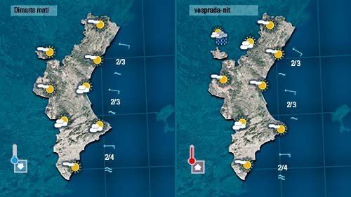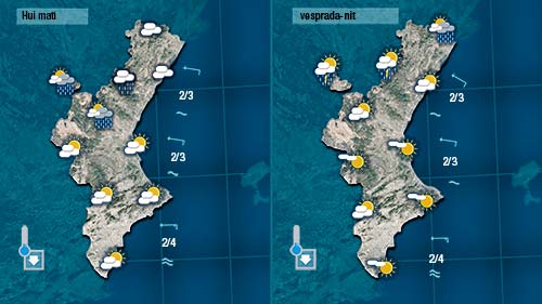 Els núvols seran abundants, i fins i tot haurem de’estar atents a les possibles precipitacions que puguen registrar-se. No seran abundants ni generals però de vesprada podrà formar-se algun nucli de tempesta mes actiu que puga descarregar amb més intensitat.