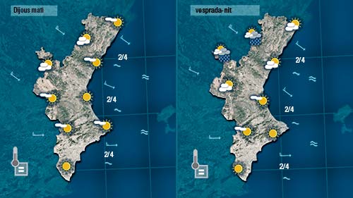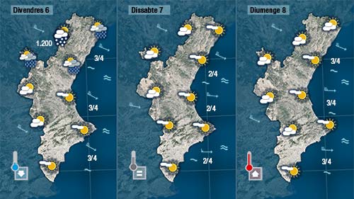 Divendres tornarà a ser un dia ben fresc amb pas de núvols i ruixats neu.a la mitad nord de la Comunitat que per damunt dels 1.200 metres podran ser en forma de neu
