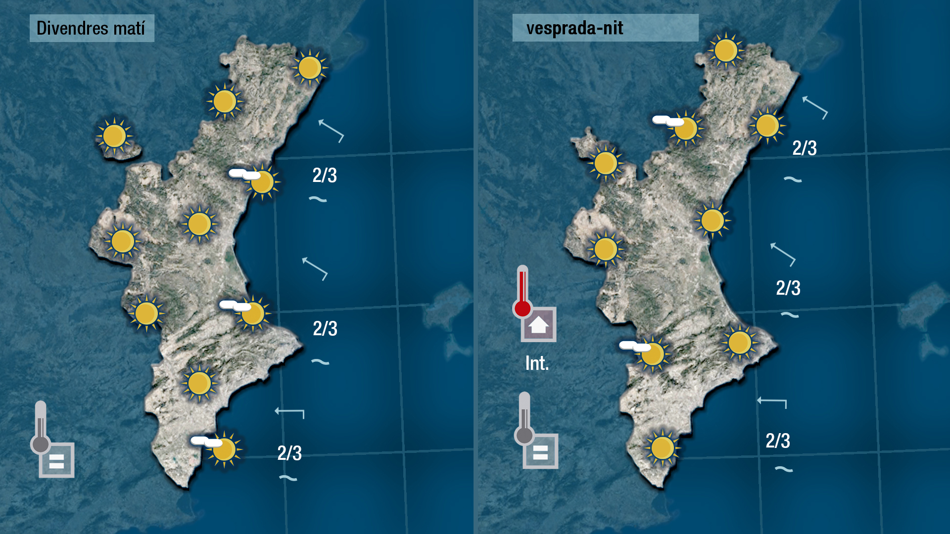 Demà divendres també ens espera un dia assolellat i calorós per tot arreu amb màximes que encara podran pujar un poc en zones de l’interior.