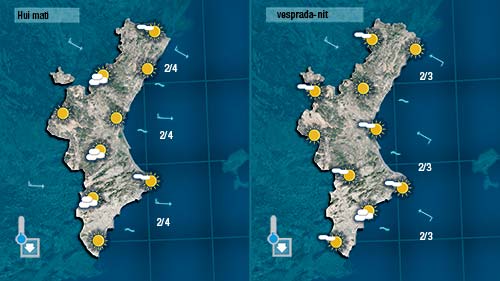 Demà divendres encara es deixaran sentir el ponent i el mestral que faran còrrer la nuvolositat doest a est. Les temperatures pujran un parell de graus.