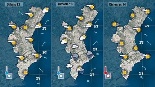 Serà dilluns quen refresque de forma més efectiva i fins i tot dimarts esperem que el cel estiga ennuvolat i puga ploure a la mitad sud de la Comunitat. Dimecres recuperarem el sol i pujaran de nou les temperatures.