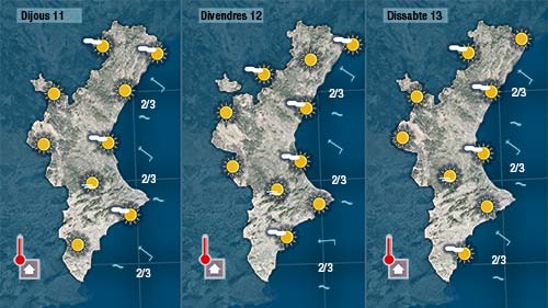 Dijous, divendres i dissabte es mantindrà l’estabilitat i tornarem a experimentar un nou ascens de les temperatures. Tot indica que dissabte i diumenge també serien dies de sol i de calor…esperem que no faça tanta com este cap de setmana passat.