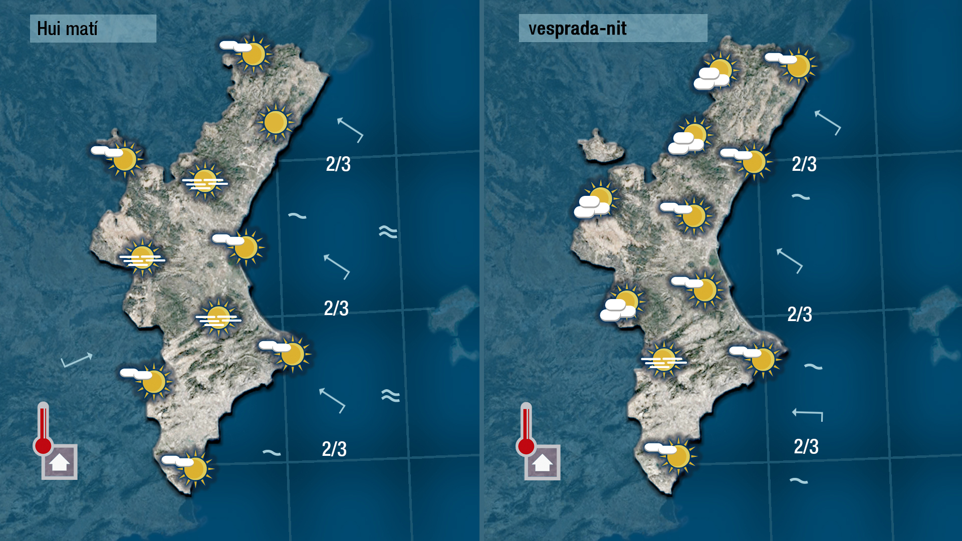 Hui tindrem el cel enteranyitat de núvols als que en cap moment cobriran el cel per complet i no seran obstacle perquè les temperatues arriben a marcar els valors d’ahir. La nit ha sigut menys freda.