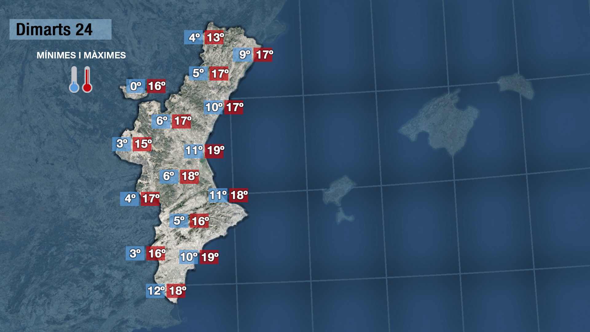 Les temperatures no pasaran dels 15 o dels 16 graus allà on més pugen, el vent de llevant es reforçarà deiant la mar prou més alterada.