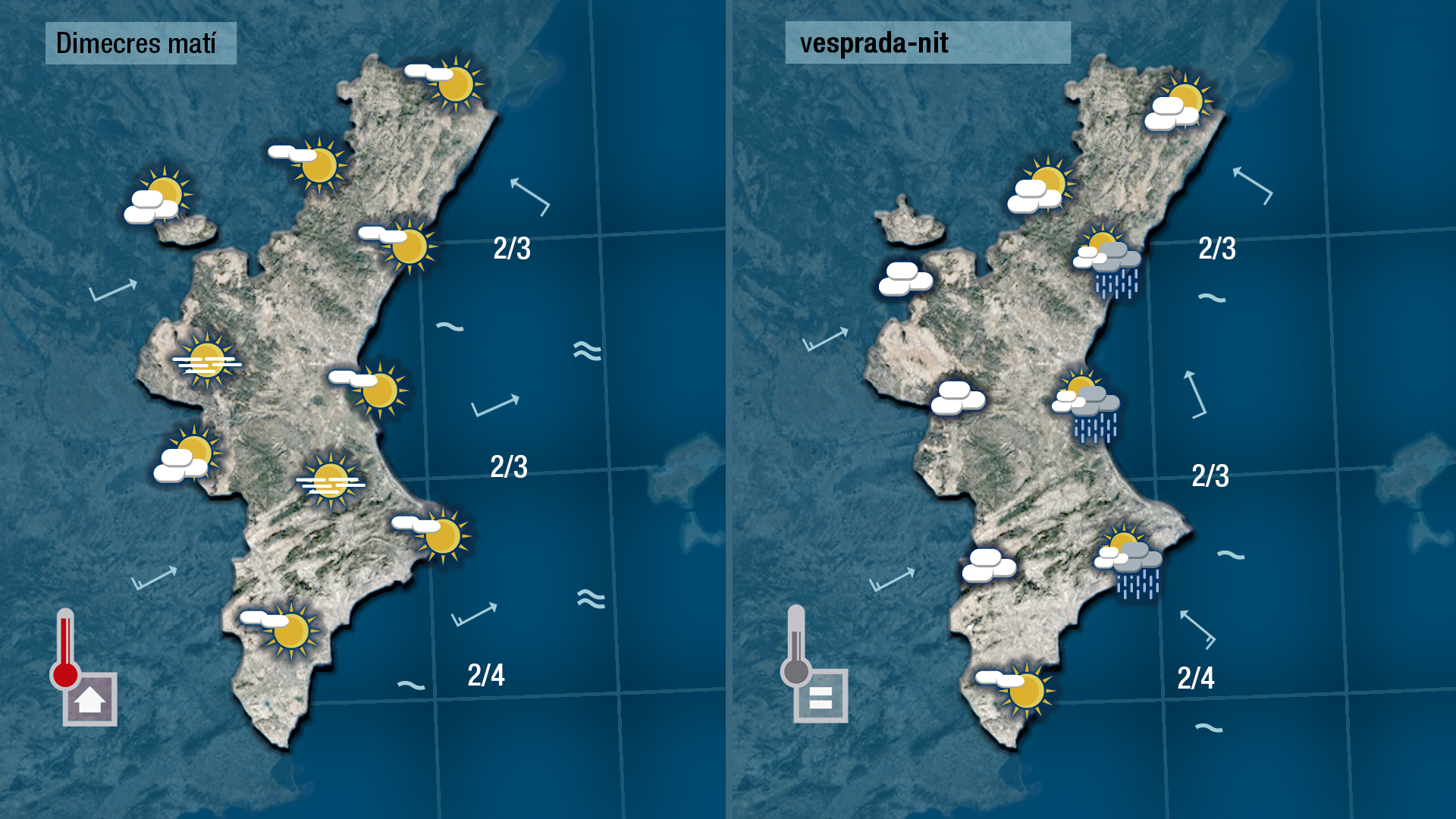 Dissabte el vent girarà a gregal i això quasi sempre és sinòmin de pluges importants al sud de València i al nord d’Alacant on fins a miyja vesprada caldrà estar molt atents a l’evolució de l’oratge i a les pluges que vagen acumulant-se.