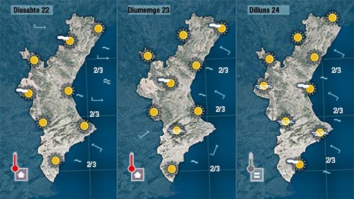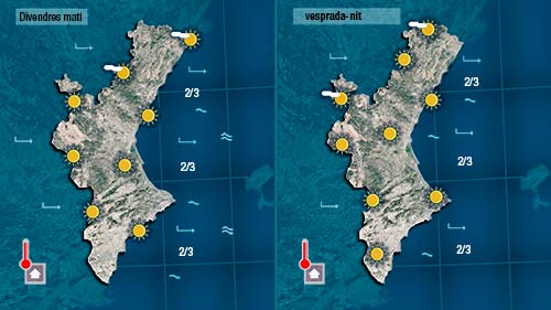Pot ser l’única cosa que podem destacar de l’oratge de hui serà el descens de les temperatures. Un descens que tampoc serà molt acusat. Esta nit han baixat lleugerament les mínimes i també ho faran les màximes en bufar el vent d’origen marítim a partir de migdia.