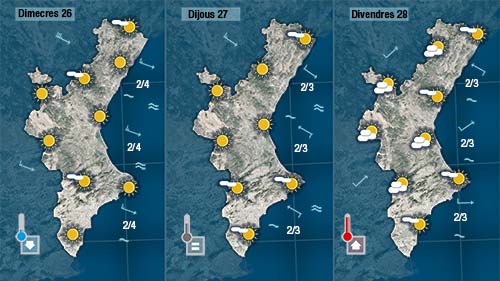 Baixaran dimecres i dijous les temperatures per tornar a pujar de nou de cara a finals de setmana.