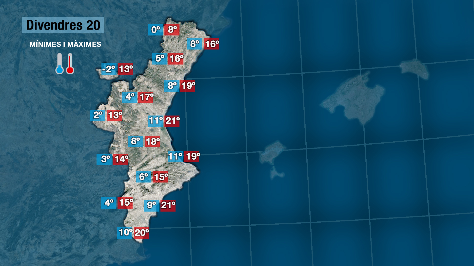 Hui tindrem una xicoteta treva. Un ascens tèrmic que no ens ha d’enganyar perquè el cap de setmana serà dels d’abrigar-se bona cosa si eixim a l’aire lliure o d’eixos de quedarse a casa i disfrutar de la caloreta del llar perquè farà sol però una volta al carrer el fred serà intens sobretot per la nit i durant la matinada.