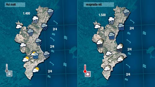 Hui notarem com comença a remetre. Encara plourà i localment ho farà amb inensitat moderada, soobretot en punts de la costa i al nord, on encara podrà nevar per damunt dels 1.400-1.500 metres.