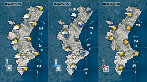 Divendres tindrem més sol que núvols i l’ambient serà suau a migdia, però dissabte tornen els núvols i la pluja (no cal alar,ar-se perquè tot indica que serà de caràcter dèbil).