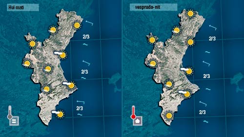 Demà dimarts la nit tornarà a ser fresca a la costa i freda per l’interior però les temperatres continuaran la seua marxa ascendent al centre del dia.